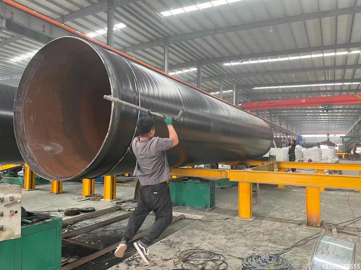 完成前期處理后,便進入精細的防腐層涂覆環節。首先是環氧粉末噴涂,將經過預熱的鋼管勻速通過靜電粉末噴涂室,環氧粉末在高壓靜電場作用下均勻吸附于鋼管表面,隨后經固化爐加熱固化,形成一層堅韌的內涂層,厚度精準控制在規定范圍,如同給鋼管穿上一層 “貼身鎧甲”。接著,涂上膠粘劑,它如同 “雙面膠”,在液態狀態下均勻包裹鋼管,為后續聚乙烯層的附著牽線搭橋。最后,是聚乙烯層的纏繞,采用擠出纏繞工藝,將熔融的聚乙烯塑料螺旋纏繞在涂有膠粘劑的鋼管上,形成厚實的外防護層,每層纏繞都緊密有序,厚度誤差控制在極小范圍內,確保整個 3PE 防腐層結構完整、性能穩定,從內到外層層守護鋼管,使其具備卓越的防腐抗蝕能力。