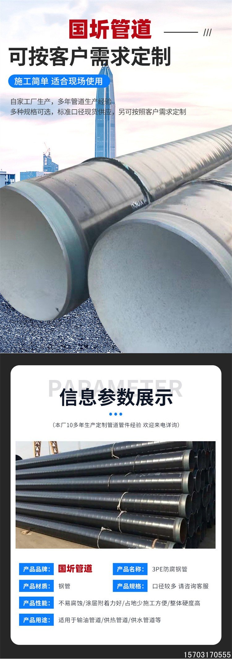 L415 加強級 3pe 防腐螺旋鋼管的卓越性能,首先源于其核心材質 ——L415 鋼材。這種鋼材具有令人矚目的高強度特性,屈服強度高達 415MPa 以上,抗拉強度更是超過 520MPa,這意味著它在承受巨大壓力時,依然能夠保持結構的穩定,有效防止管道的變形與破裂。在深海油氣輸送項目中,海底的高壓環境對管道是巨大的考驗,而 L415 鋼材憑借其高強度,如同深海中的堅固堡壘,穩穩地承載著油氣的輸送任務,確保能源的順暢傳輸。
