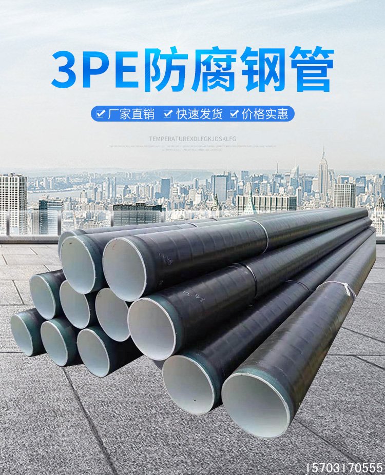 第三層聚乙烯(PE)2.5~3.7mm。三種材料融為一體,并與鋼管牢固結(jié)合形成優(yōu)良的防腐層。