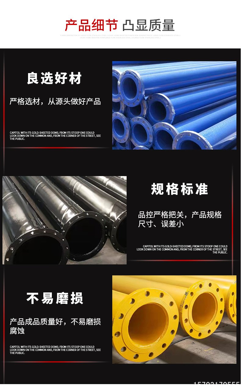 公司對產品有嚴格的檢測手段,從原材料檢驗到成品,每一環節均嚴格把關,嚴控產品質量。產品廣泛應用于市政工程,供水管道,供熱管網,煤氣管網,煤井礦山,通風管道,建筑工程,鋼結構等領域。同時,公司連續幾年取得廣東省守合同重信用企業證書,“誠信、求實、拼搏、奮進” 是企業精神,致力于為客戶提供優質的產品和服務。