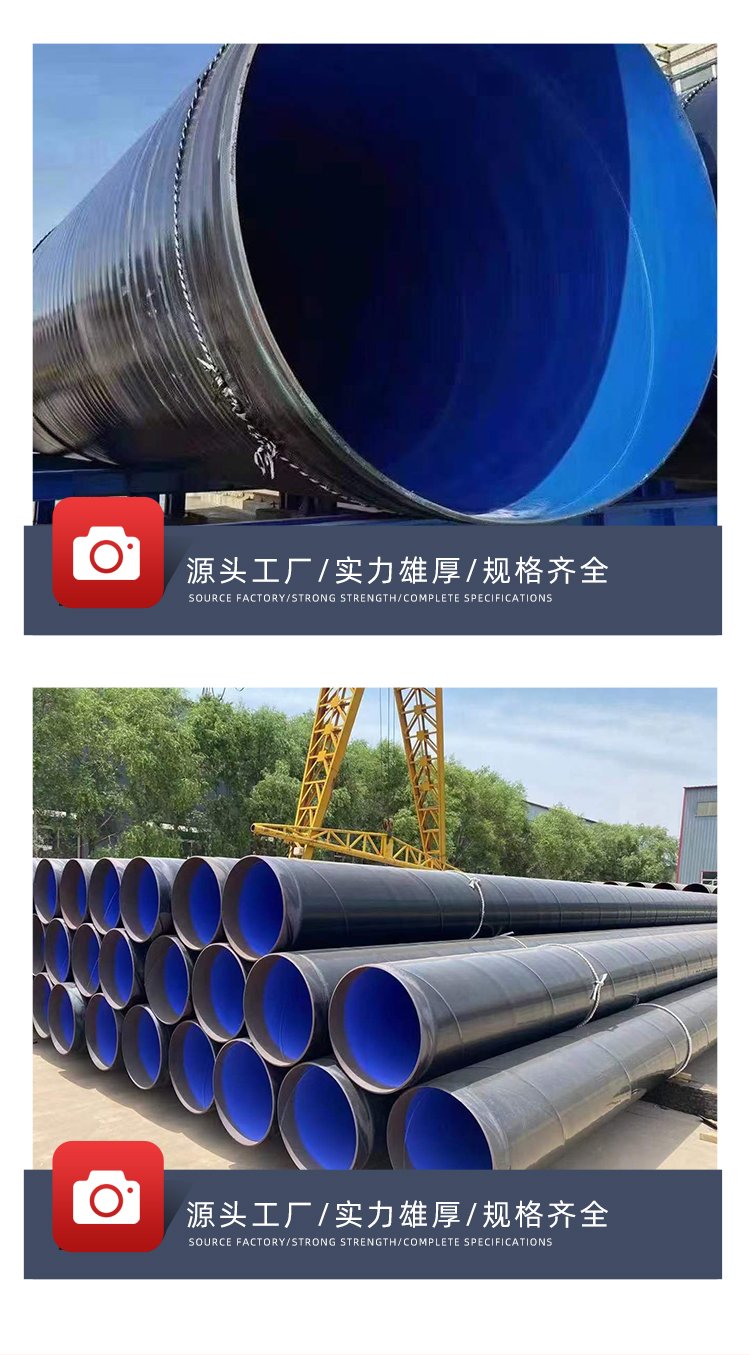 第二層是中間膠粘劑層,其主要作用是將環(huán)氧粉末層和最外層的聚乙烯層緊密結(jié)合在一起。膠粘劑具有良好的粘結(jié)性能,確保三層結(jié)構(gòu)形成一個整體,防止分層現(xiàn)象的發(fā)生。 - 第三層是聚乙烯層,它是一種高分子材料,具有良好的耐腐蝕性、抗老化性和機械性能。聚乙烯層能夠抵御外界的物理損傷,如碰撞、刮擦等,同時也能進一步阻止水分和化學(xué)物質(zhì)的侵入。 - **內(nèi)環(huán)氧粉末防腐**: - 環(huán)氧粉末通過靜電噴涂的方式涂覆在鋼管內(nèi)壁。在固化后形成堅硬、光滑的涂層。這種涂層具有很強的耐水性和化學(xué)穩(wěn)定性,可以防止水中的溶解氧、氯離子等腐蝕性成分對鋼管內(nèi)壁的侵蝕。而且光滑的內(nèi)壁還能降低水流阻力,減少能量損失,有利于輸水。